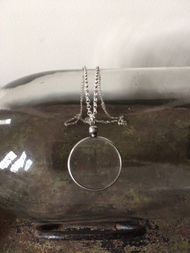 A lovely Silver cased looking glass approx 12-14mm diameter.... slightly magnifying & a great stylish piece that looks truly contemporary hanging from this beautiful vintage belcher chain.