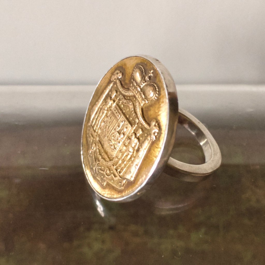 The 'button' has been set into a silver bezel & has a solid silver back that sits aloft a heavy silver band as befits its glory.