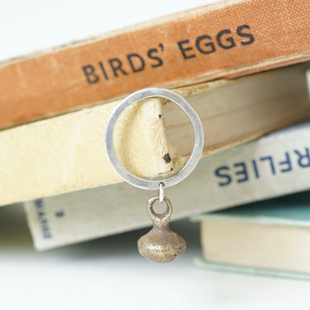 Each 'button' has been hung from a silver band to create a dangle ring.