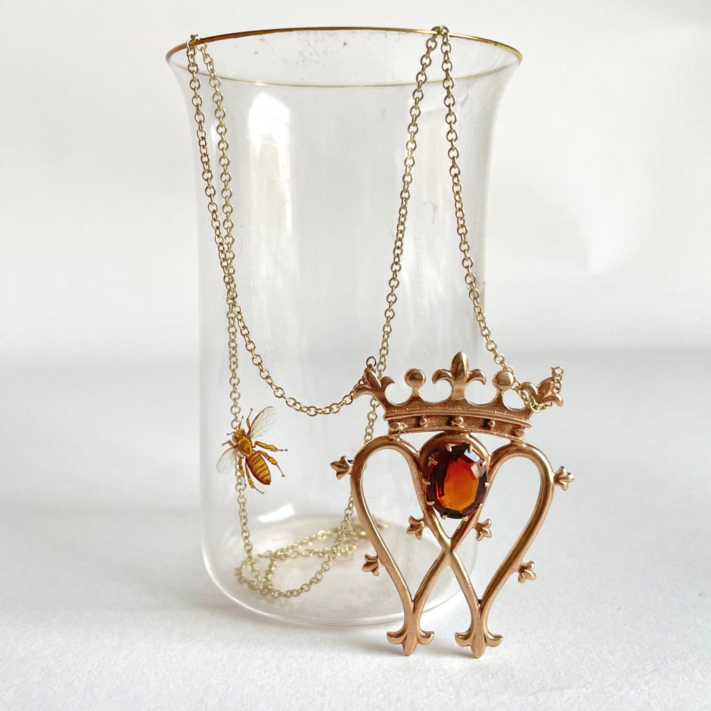 Gold and Citrine Hearts and Crown Luckenbooth Necklace
