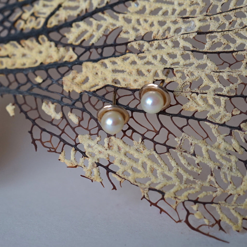 A stunning pair of vintage pearl stud earrings . The 4mm diameter natural pearl sits on a 9ct gold cuff stud.
