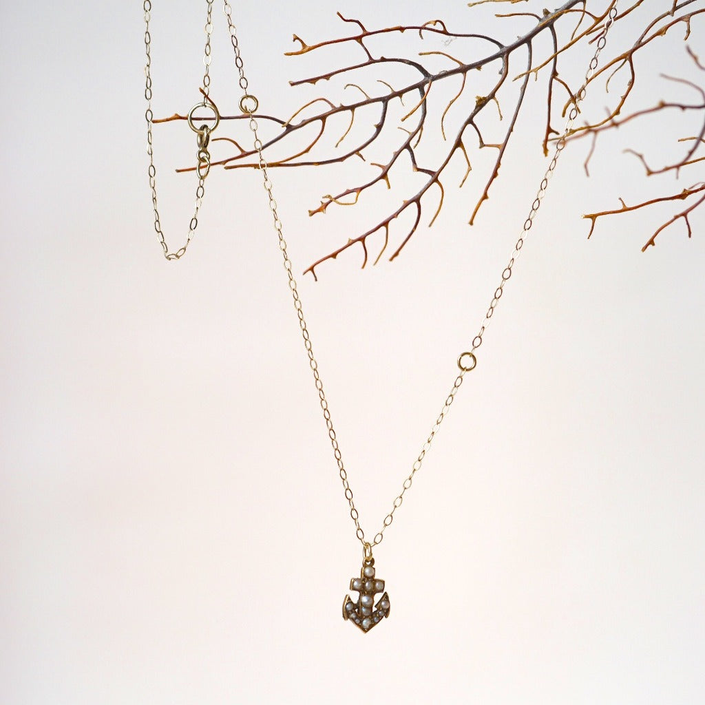 Absolutely exquisite fine 9ct gold and Seed Pearl anchor hangs from a 9ct gold trace chain. The anchor began life as a Victorian tie pin.