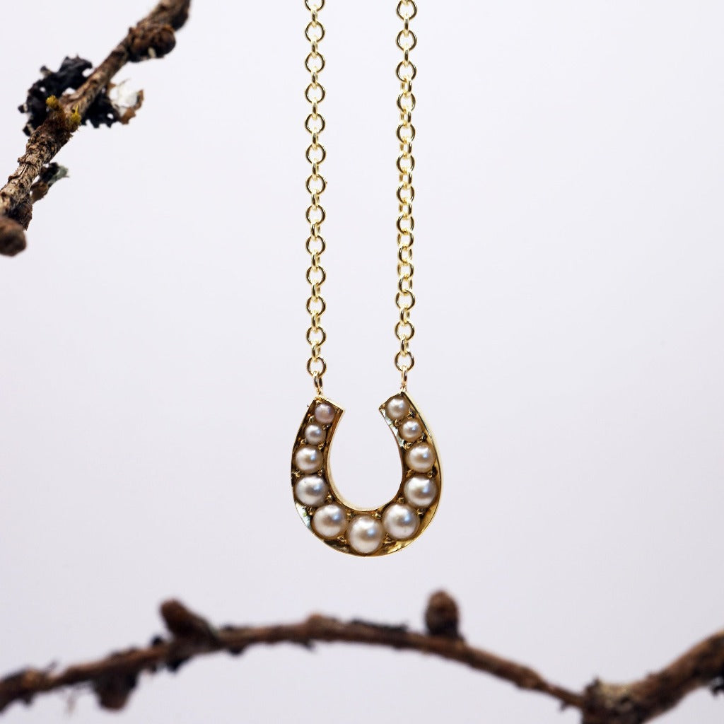 Antique Gold and Seed Pearl Horseshoe Necklace