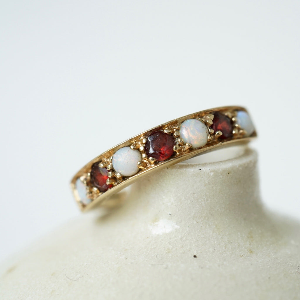 Badger's Velvet repaired this original antique precious opal and garnet eternity ring replacing one of the opals which had been lost.