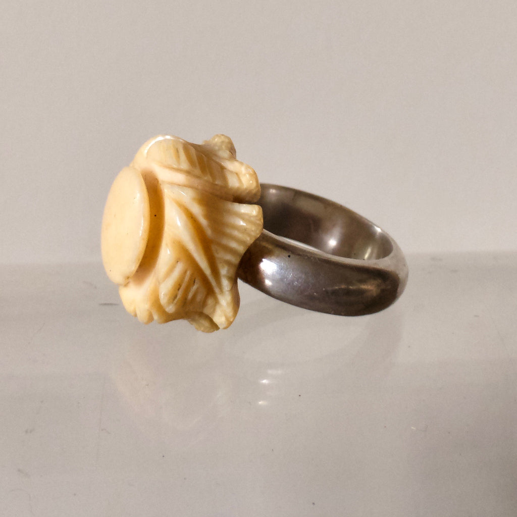 This hand carved Georgian beauty started life at the end of a piece of cutlery probably a serving knife, it is either bone or possibly ivory. All we know is that is absolutely unique and a beauty that would make the most glorious signet ring if engraved with initials..... We will leave that for you to decide.