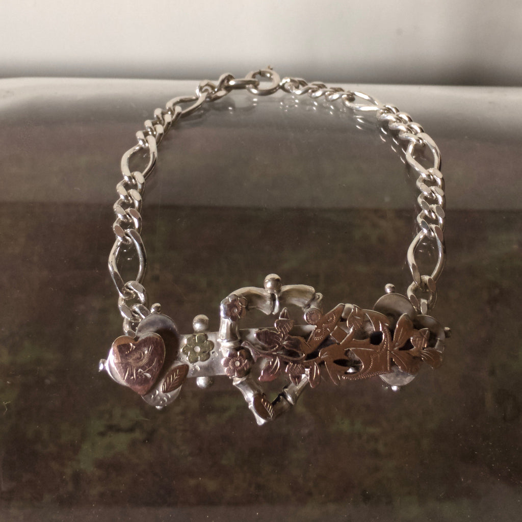 Victorian Rose Gold and Silver Love heart Bracelet.