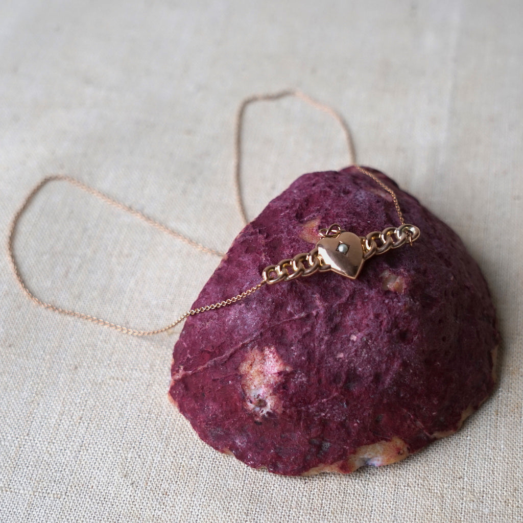 Antique 9ct Gold Heart & Pearl on Curb Chain.