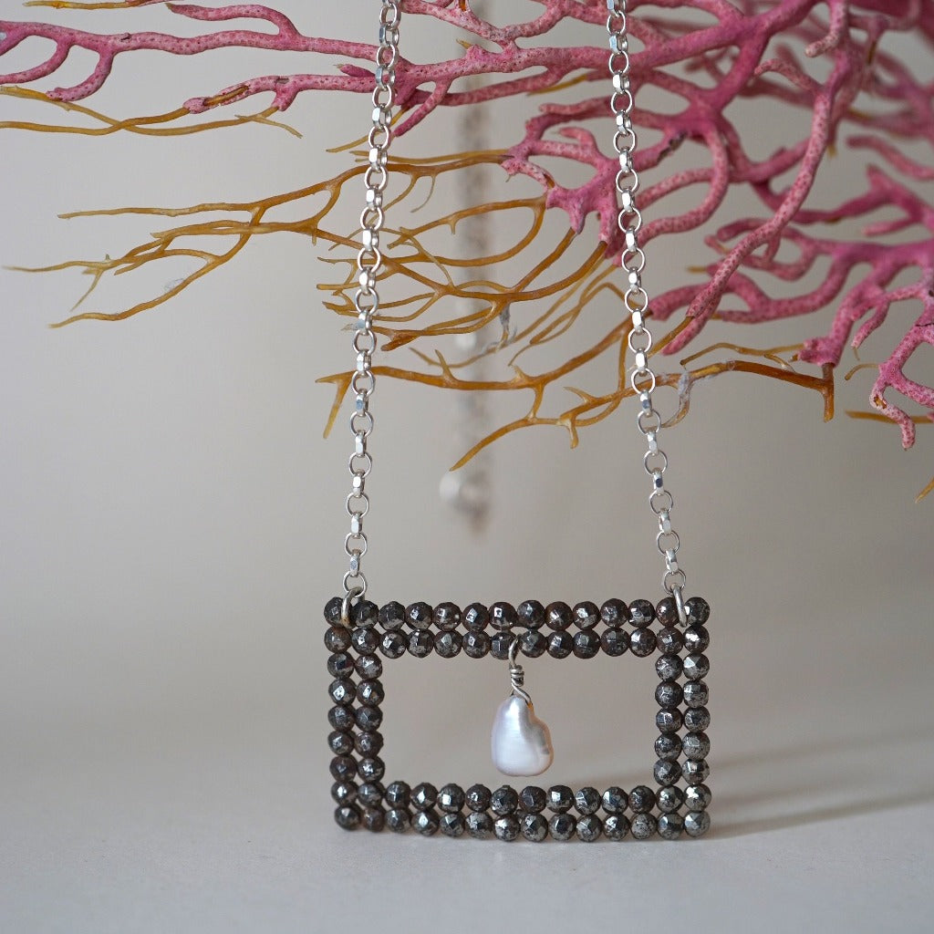Georgian Cut Steel Square Eye Buckle and Pearl Silver Necklace.