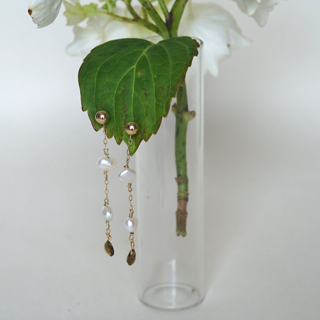 Gold, Freshwater Pearl and Tourmaline Drop Earrings