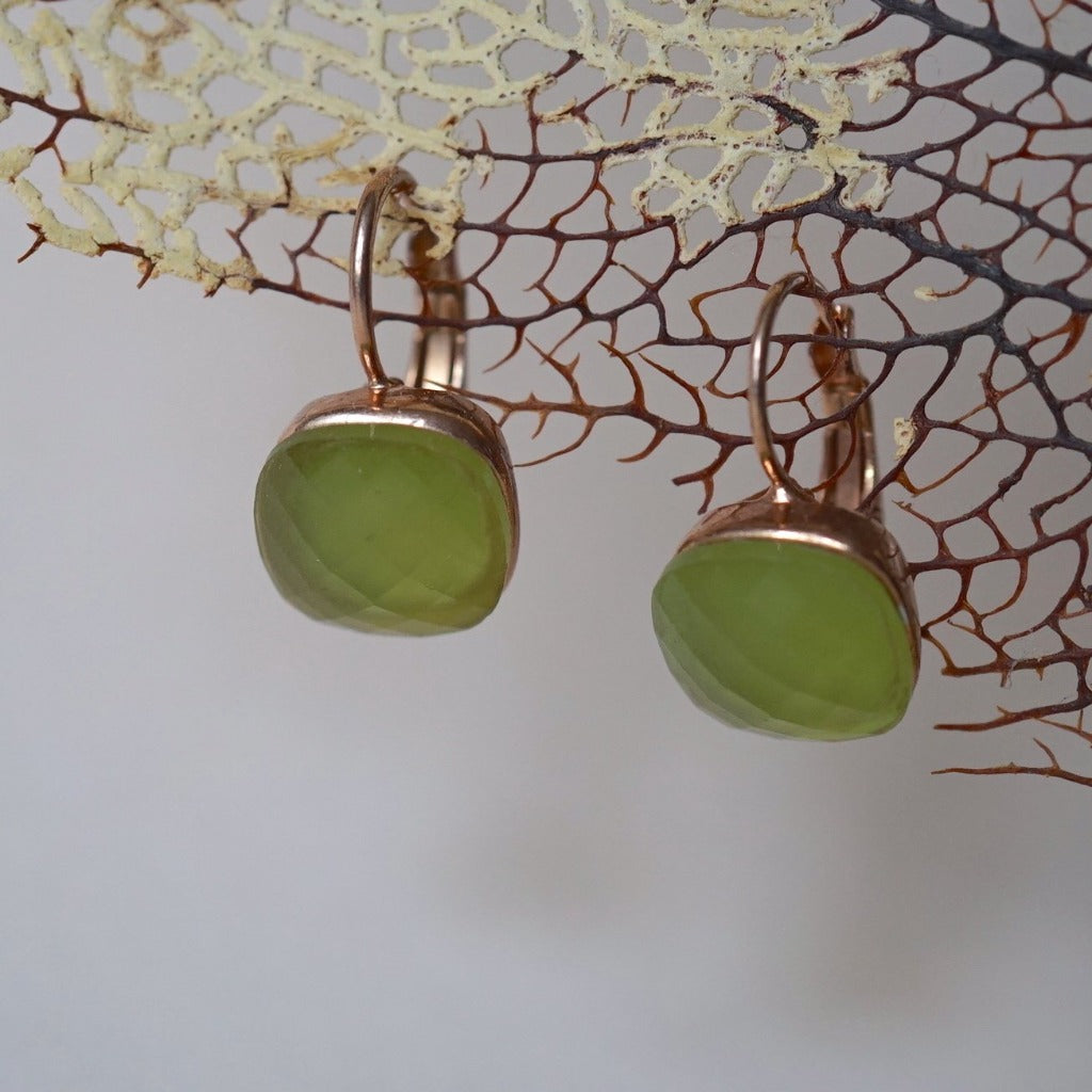 These lovely vintage Italian earrings are made from apple green zirconias and rolled gold.