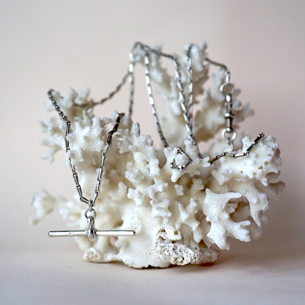 Victorian 26" Silver Albert T Bar Necklace