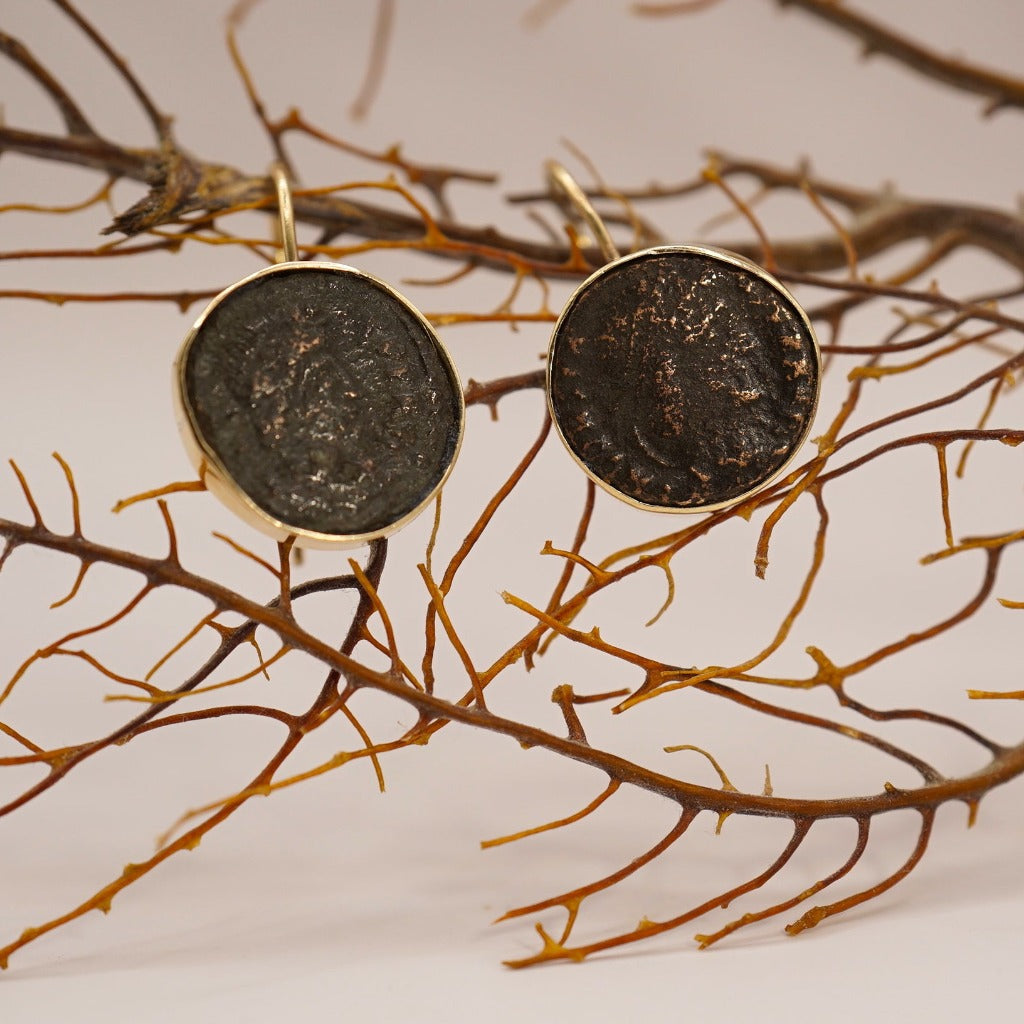 Gold Mounted Roman Coin Earrings