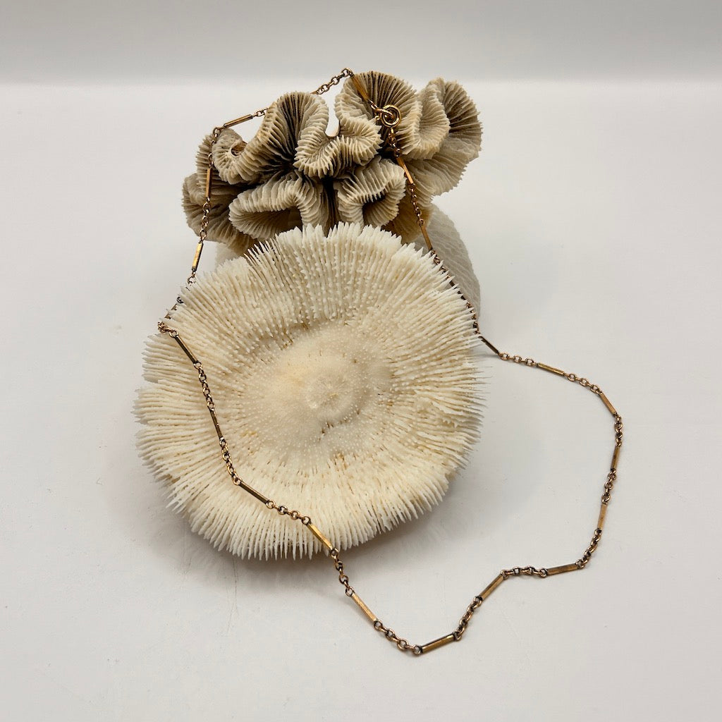We have created two gorgeous fine necklaces from a stunning length of Victorian bar and oval guard chain.