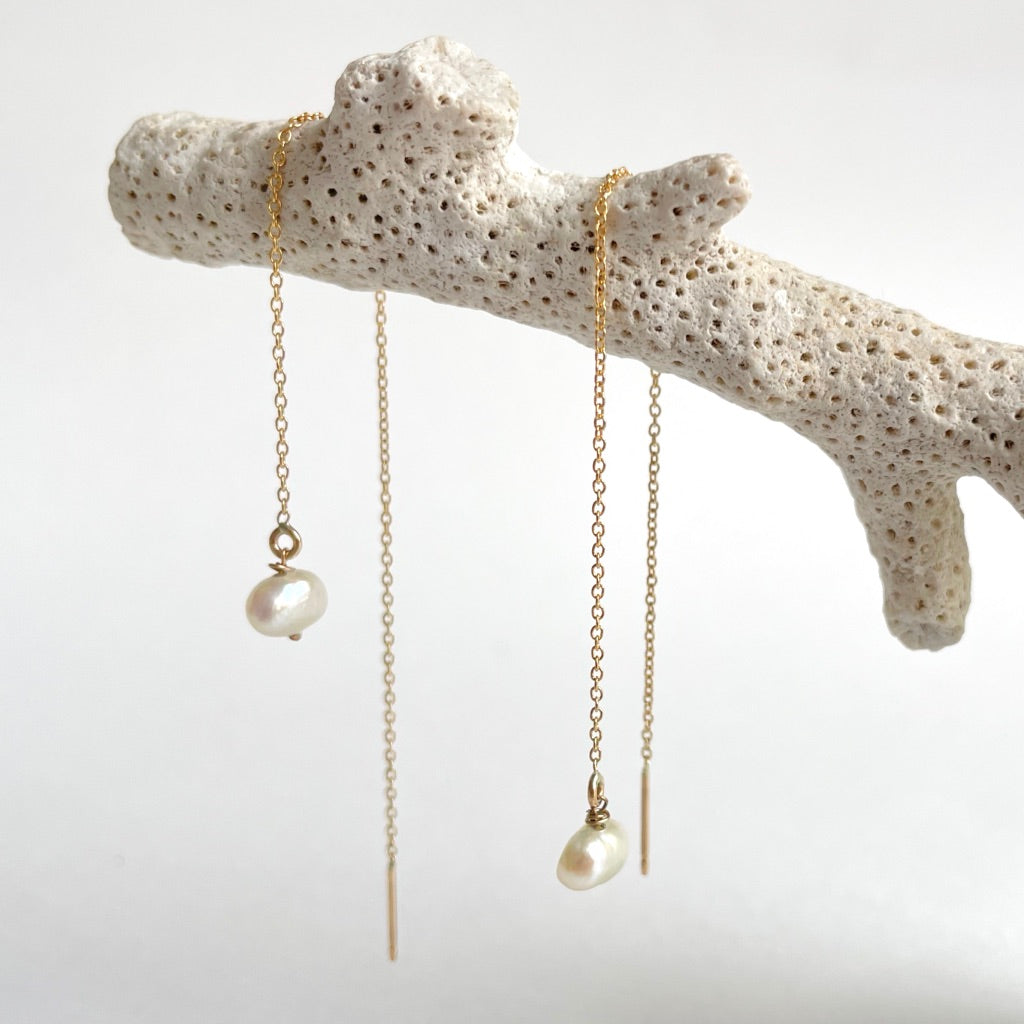 Single Freshwater Pearl & Gold Threader Earring